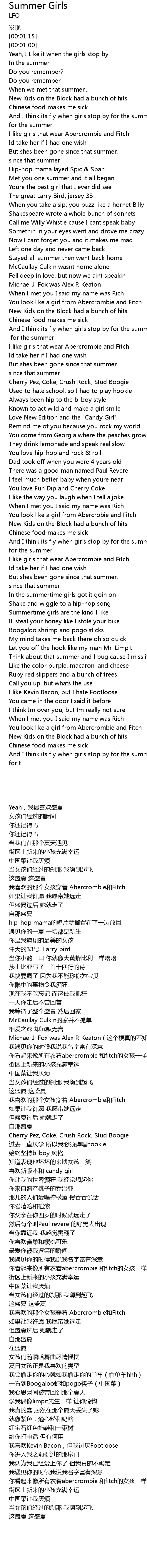 | [01:27.31] | I like girls that wear Abercrombie and Fitch |
