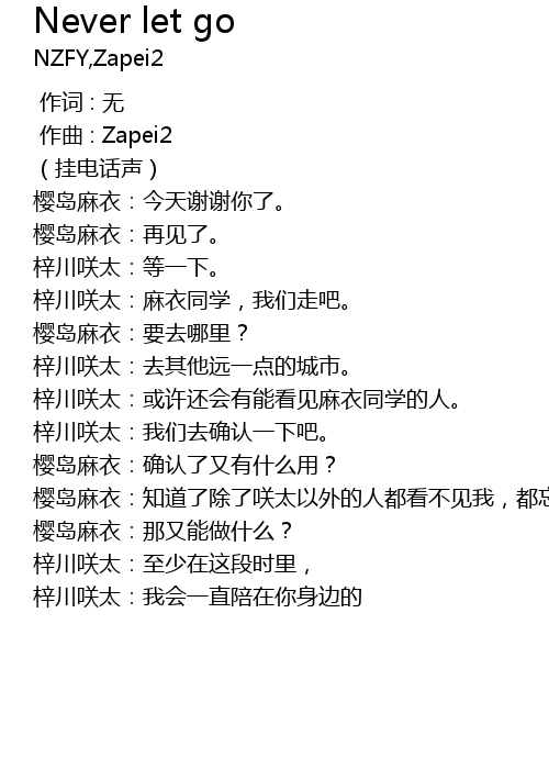 | [00:00.000] | 作曲 : Zapei2 |