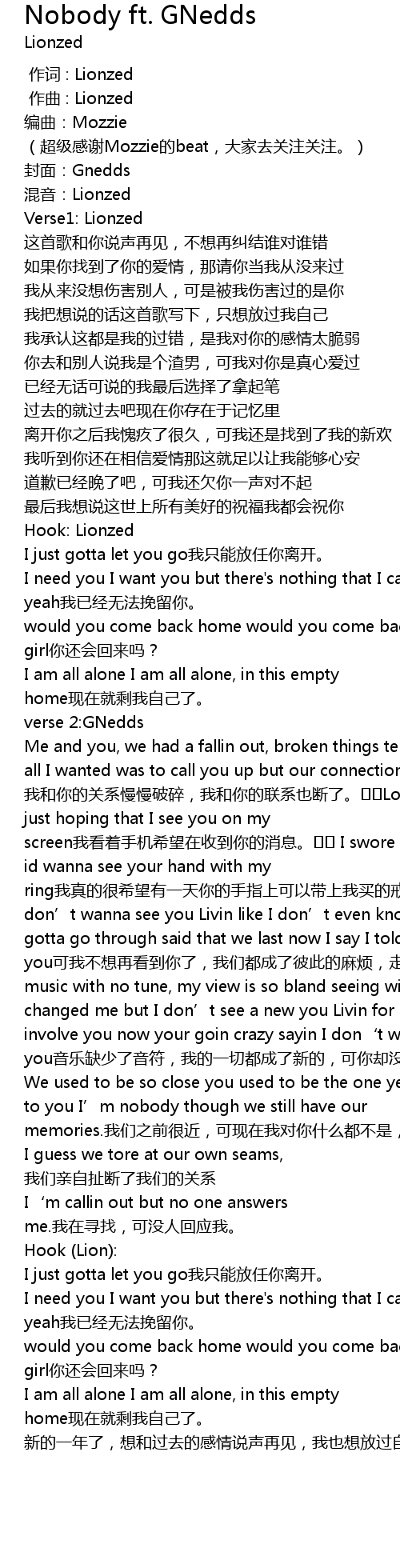 | [00:00.000] | 作词 : Lionzed |