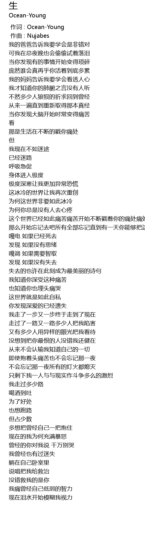 | [00:00.000] | 作词 : Ocean-Young |