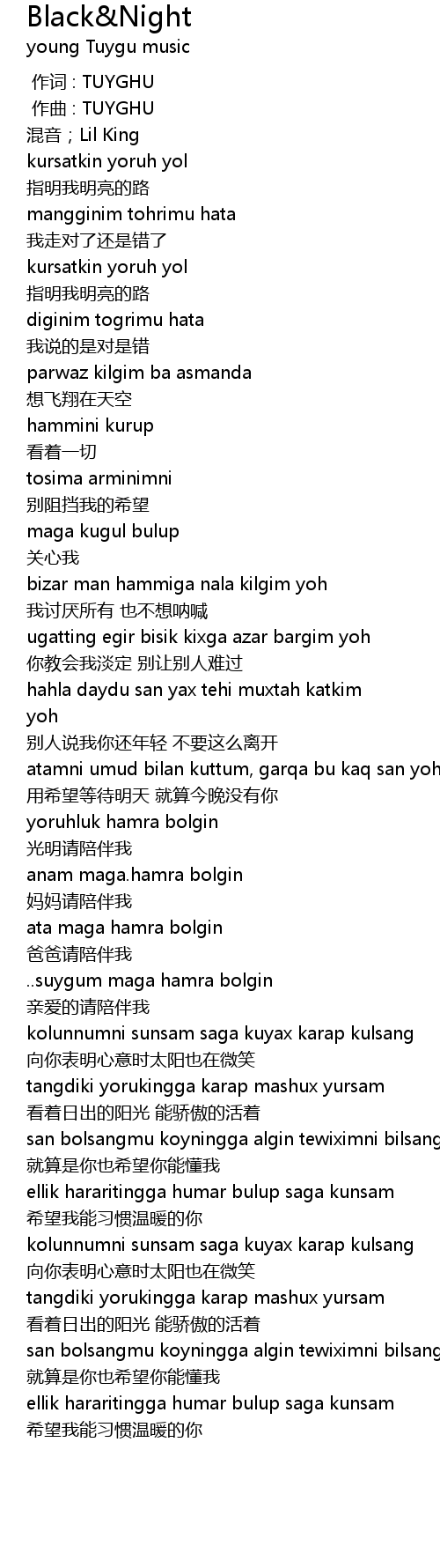| [00:01.000] | zuo qu : TUYGHU |