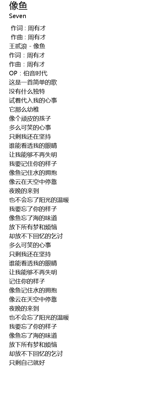 | [00:04.45] | 王贰浪 - 像鱼 |