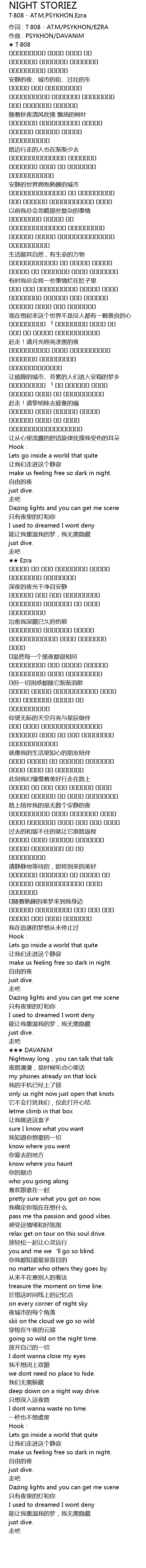 | 作词 : T·808 - AT.M/PSYKHON/EZRA | |