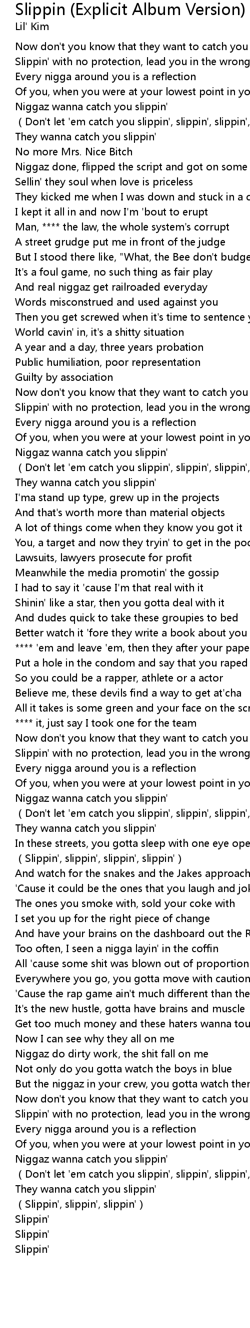 | Don' t let ' em catch you slippin', slippin', slippin', slippin' | |
