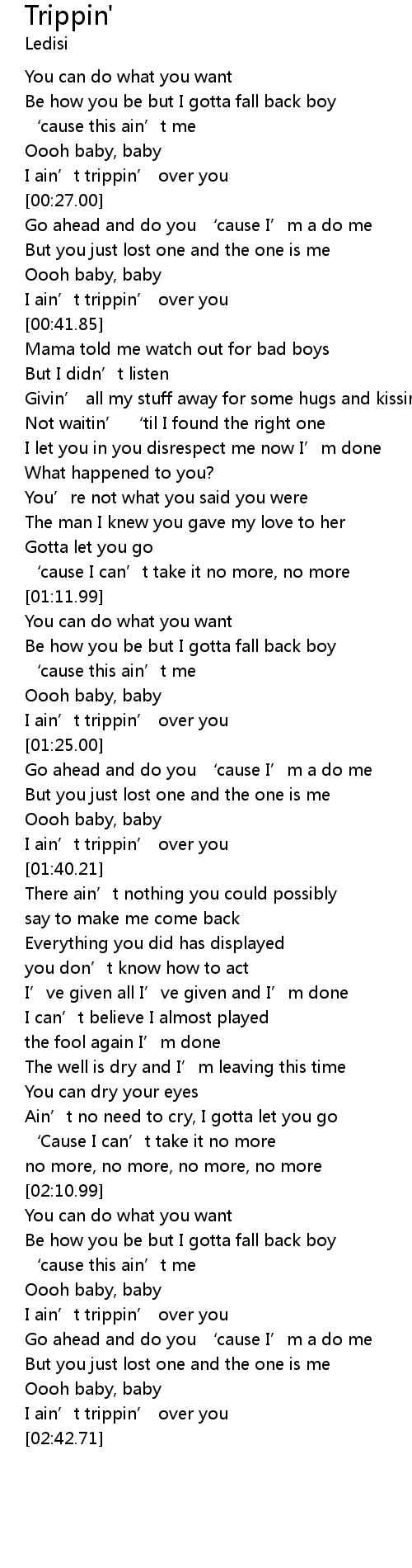 | [01:22.98] | I ain' t trippin' over you |