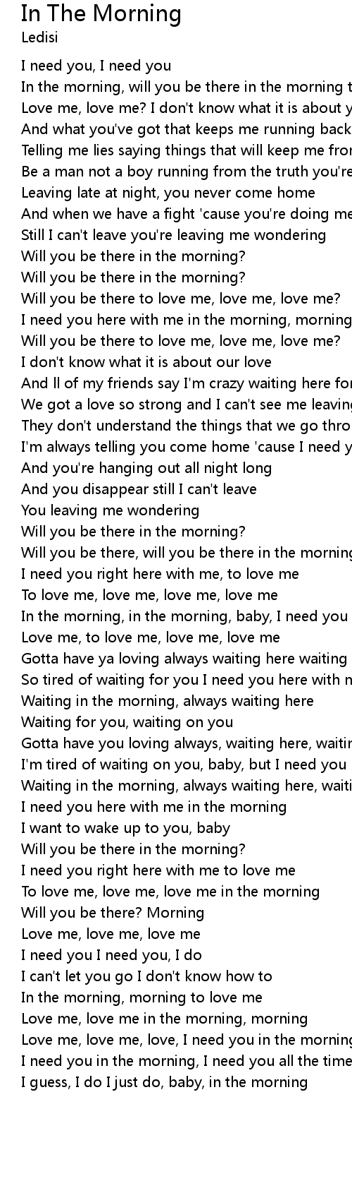 I need you here with me in the morning |