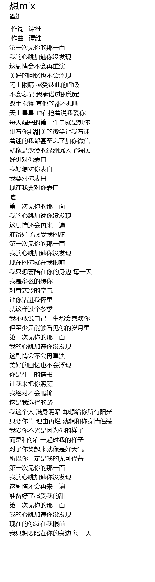 | [00:00.000] | 作词 : 谭维 |