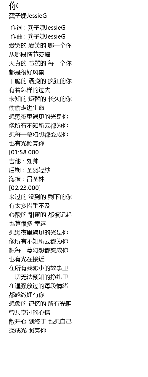 | [00:01.000] | 作曲 : 龚子婕JessieG |