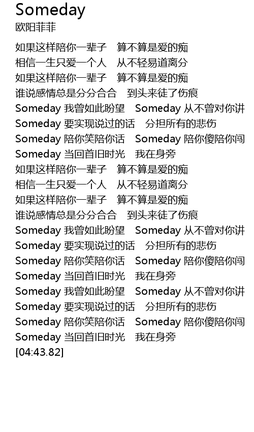 | [04:25.17] | Someday 当回首旧时光 我在身旁 |