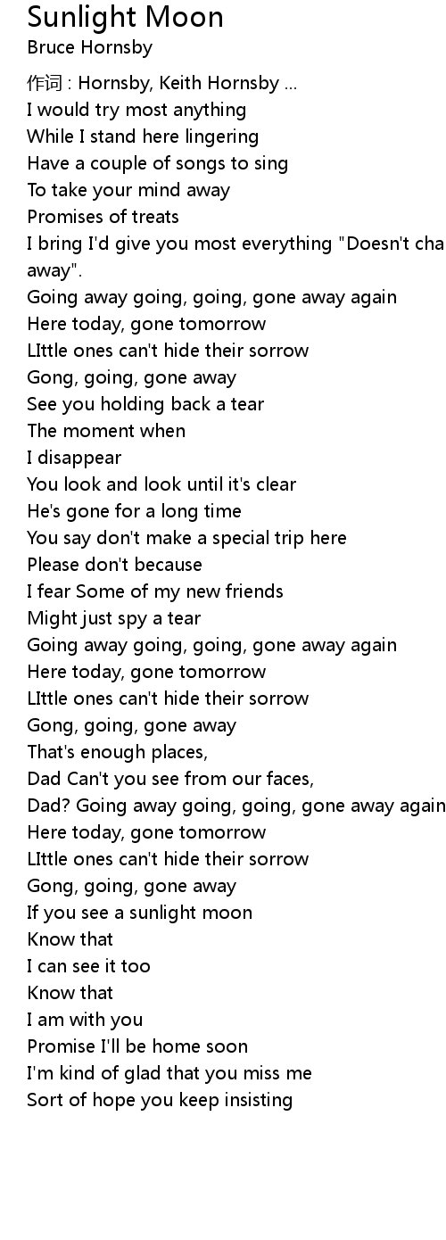 | I bring I'd give you most everything "Doesn't change anything You're just going away". | |