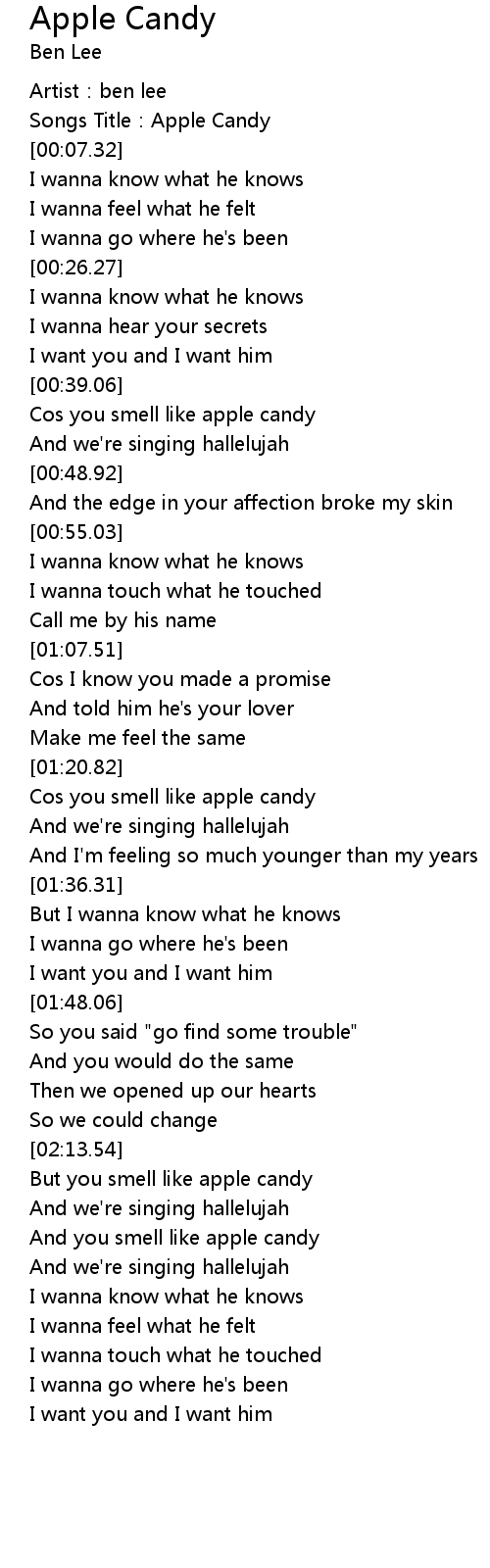 | [01:23.45] | Cos you smell like apple candy |