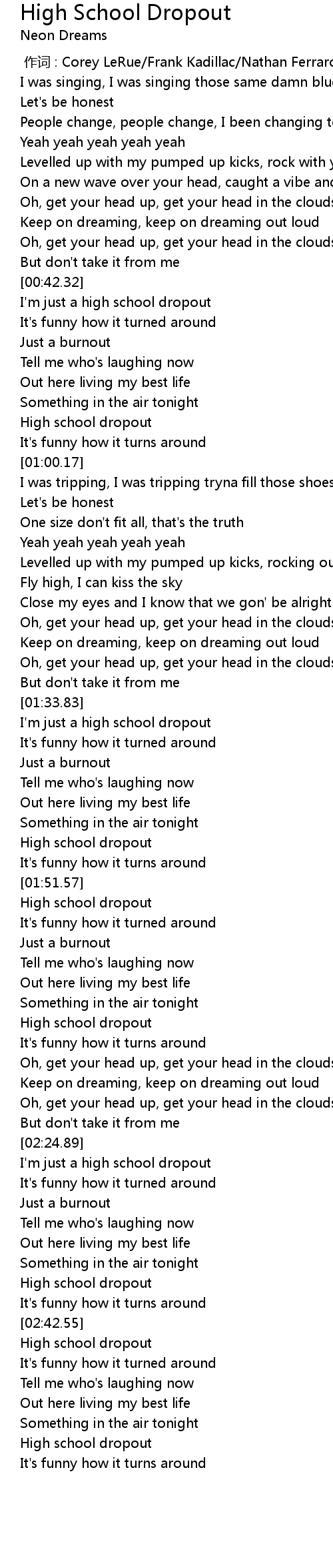 | [01:47.82] | High school dropout |
