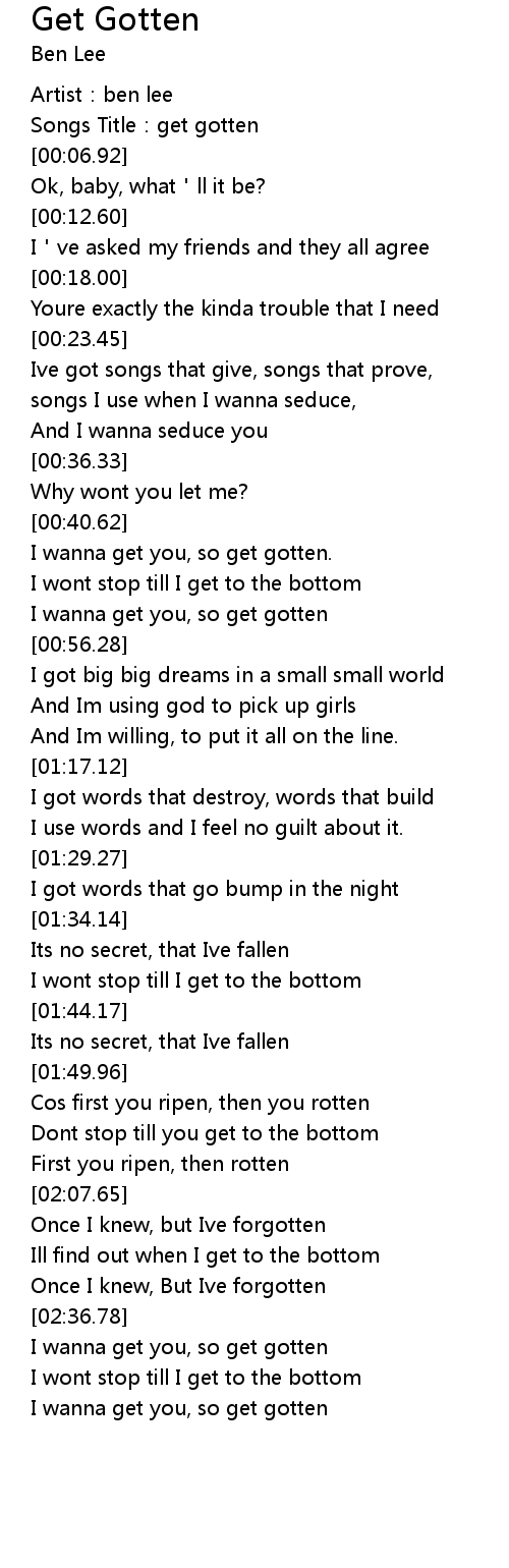 | [00:02.80] | Songs Title:get gotten |