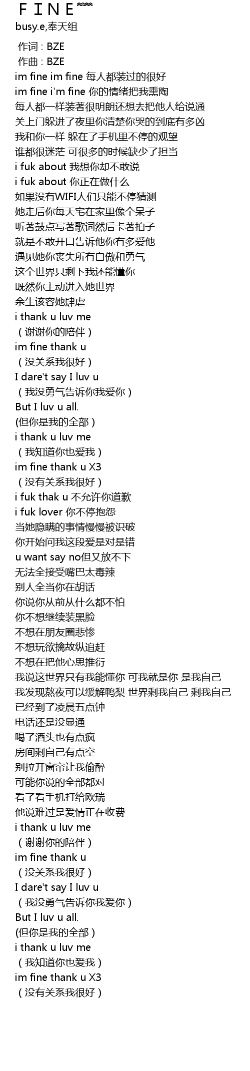 | [00:15.695] | im fine im fine 每人都装过的很好 |