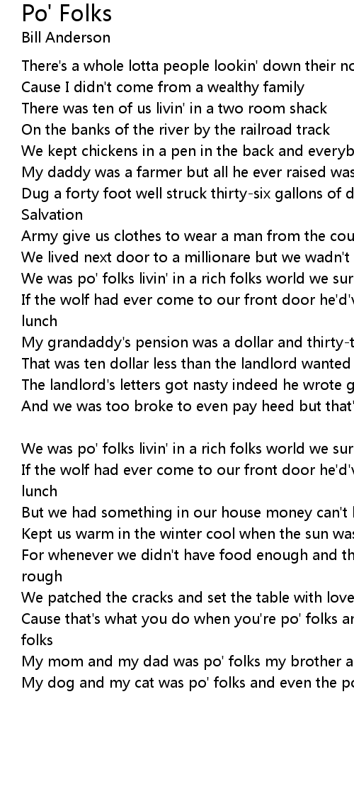 My mom and my dad was po' folks my brother and my sister was po' folks |