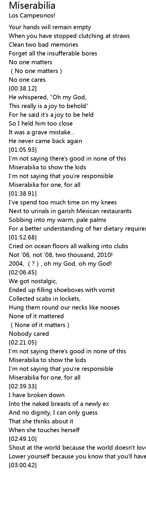 | [02:35.30] | Miserabilia for one, for all |