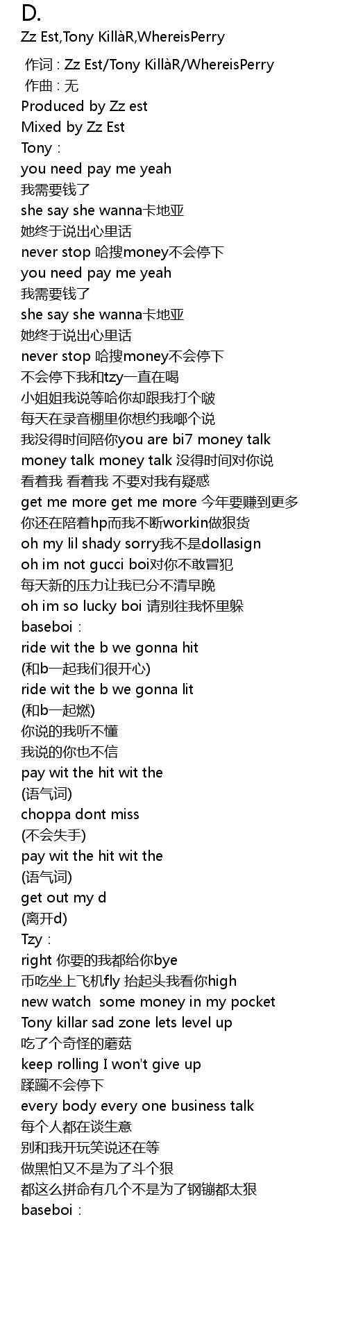 | [00:00.000] | zuo ci : Zz Est Tony Killa R WhereisPerry |