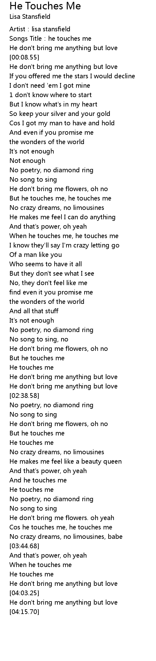 | [02:08.51] | He don' t bring me flowers, oh no |