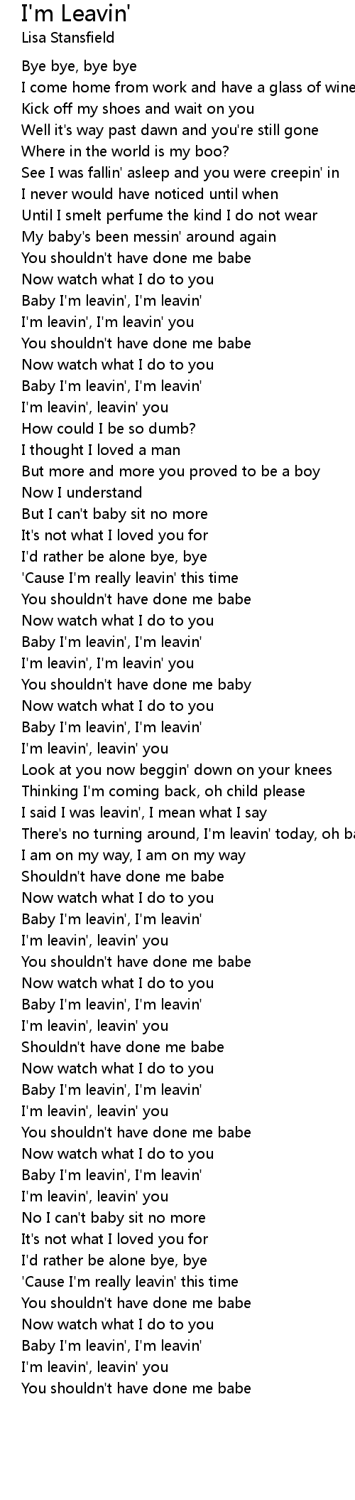 I said I was leavin', I mean what I say |