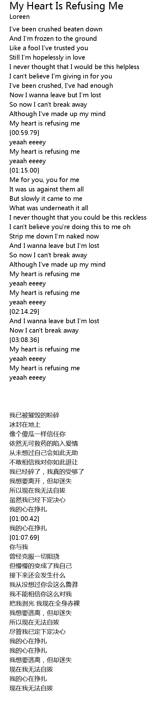 | [00:55.85] | My heart is refusing me |