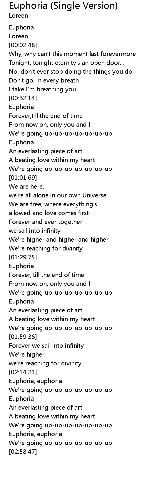 | [02:15.72] | Euphoria, euphoria |