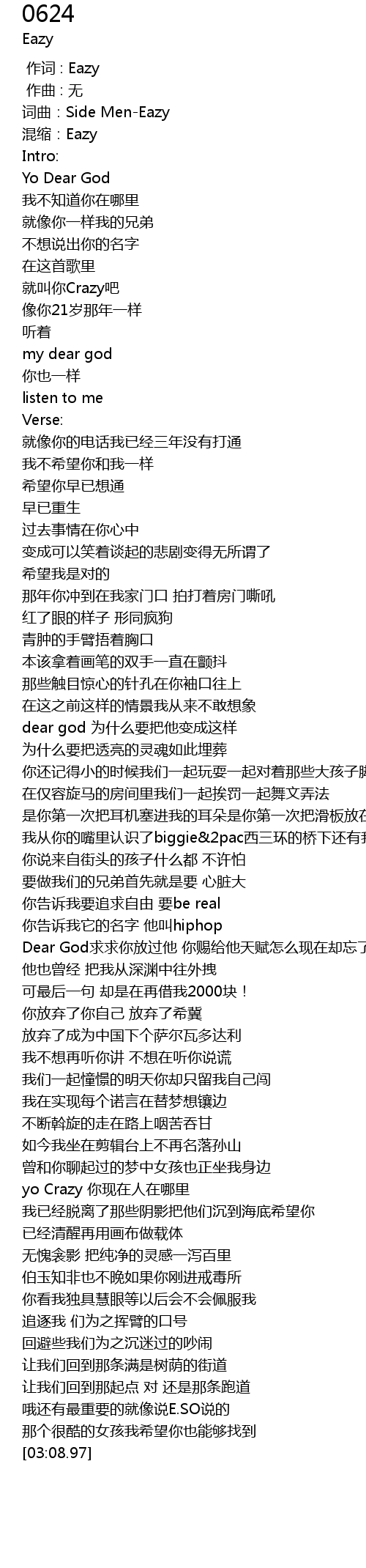 | [02:36.71] | yo Crazy ni xian zai ren zai na li |