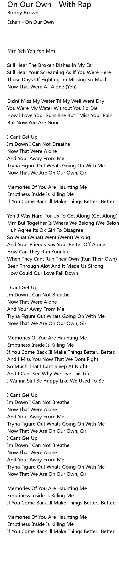 Now That Were All Alone (Yeh) |
