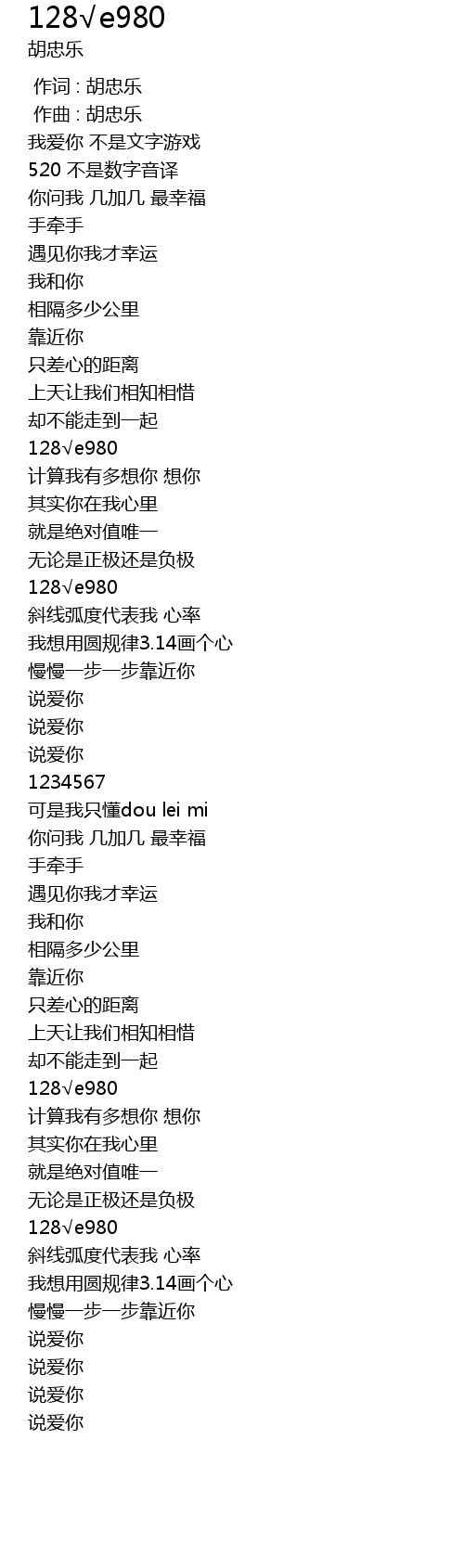 | [03:01.938] | 我想用圆规律3.14画个心 |