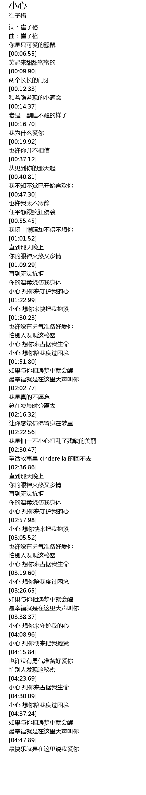 | [00:02.90] | 曲:崔子格 |