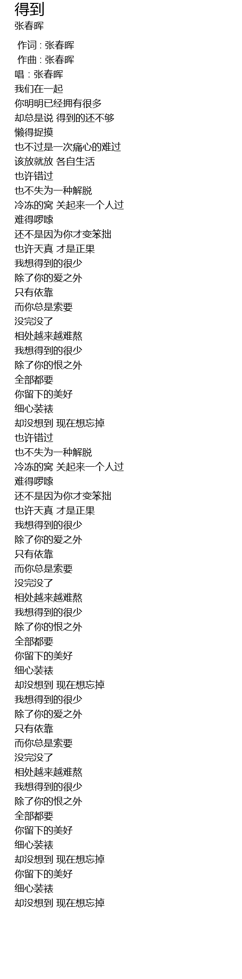 | [00:01.000] | zuo qu : zhang chun hui |