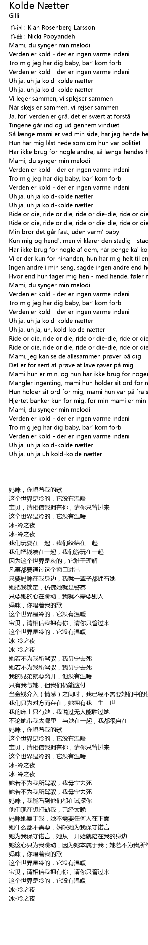 | [00:19.53] | Uh ja, uh ja kold-kolde nætter |