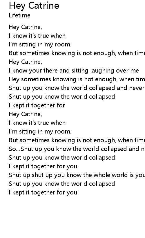 | Hey sometimes knowing is not enough, when time is what we' ve lost. | |