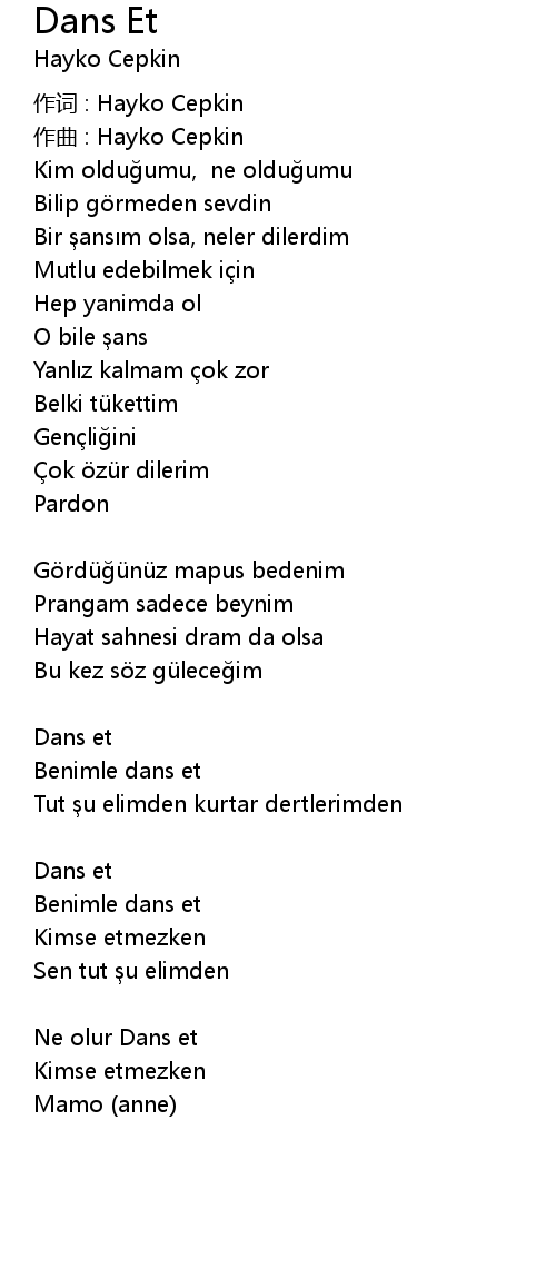 | 作词 : Hayko Cepkin | |