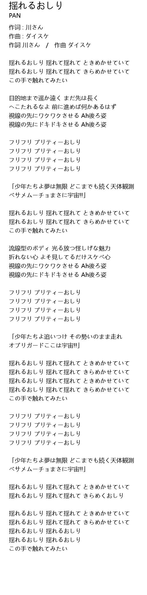 | 揺れるおしり 揺れて揺れて きらめかせていて | |