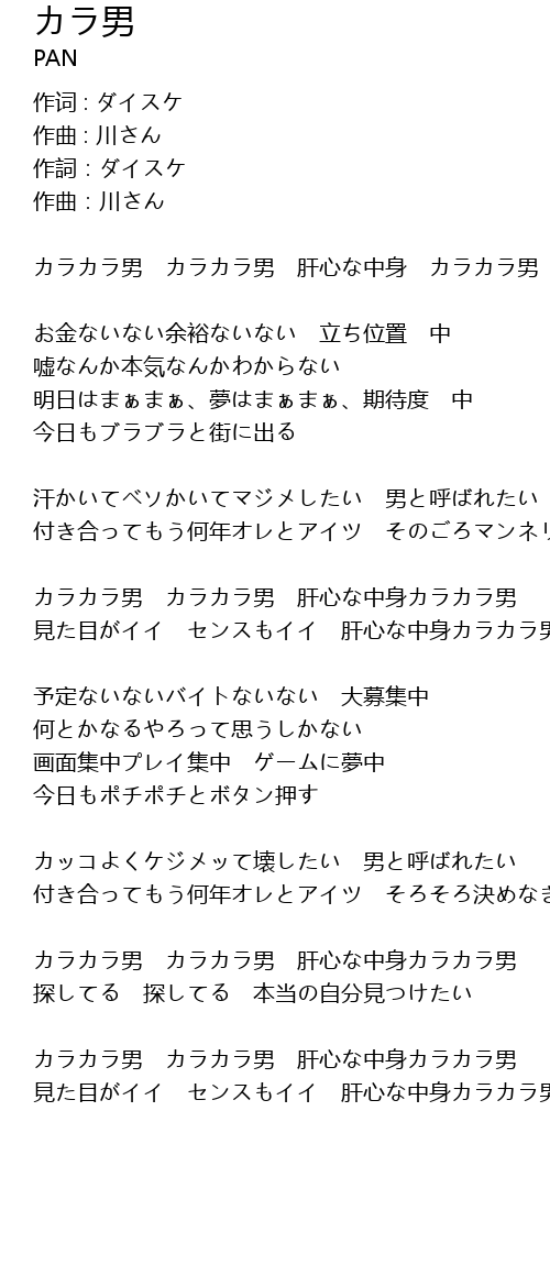 | カラカラ男 カラカラ男 肝心な中身カラカラ男 | |