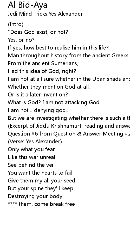(Verse: Yes Alexander) |