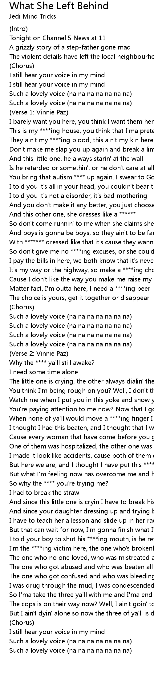 Cause I don't like the way you make me raise my ****ing voice |