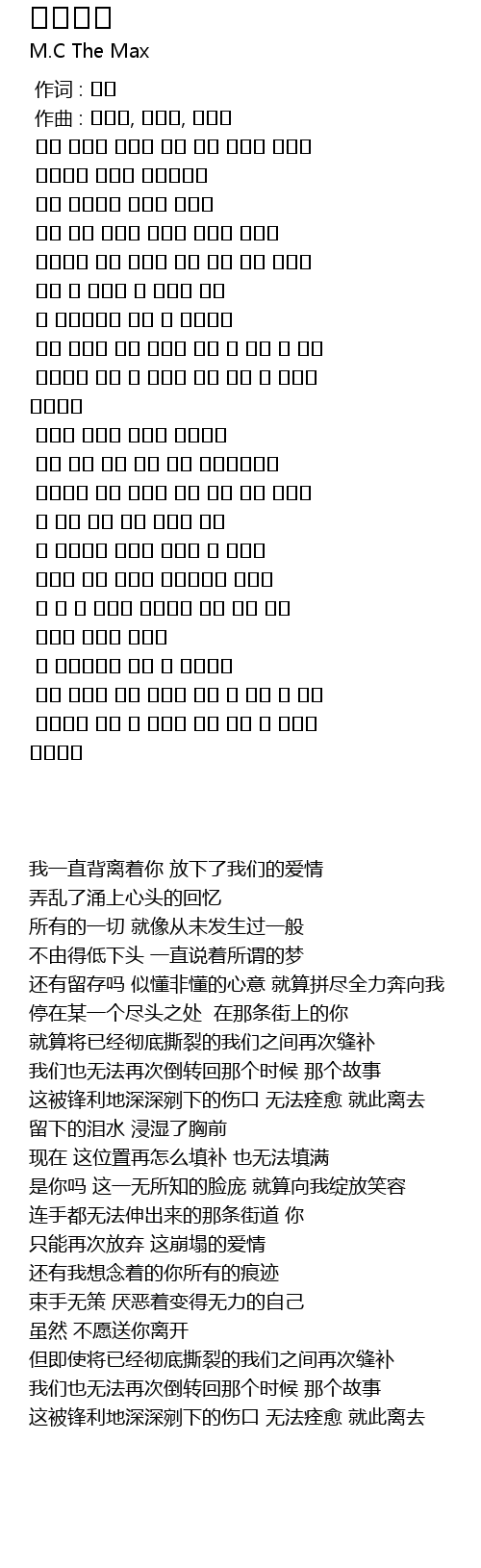나는 그대를 뒤로한 채로 우리 사랑을 놓아요 |
