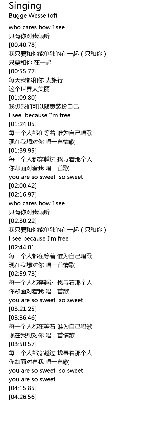 | [04:04.26] | you are so sweet so sweet |