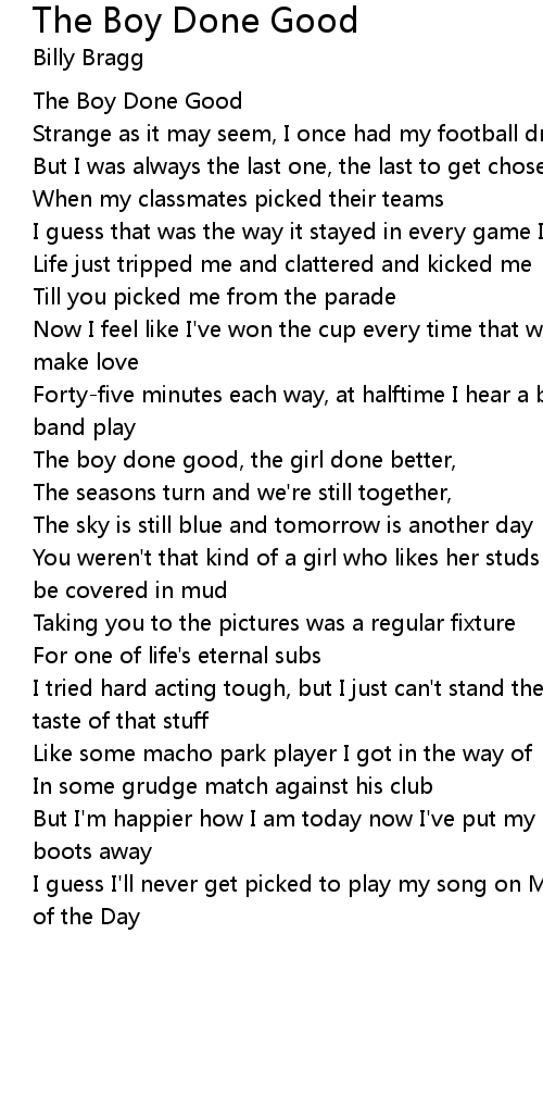 The boy done good, the girl done better, |