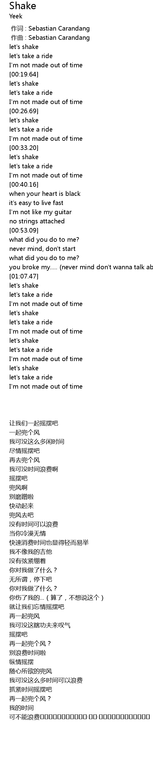 | [01:04.21] | you broke my..... never mind don' t wanna talk about it |