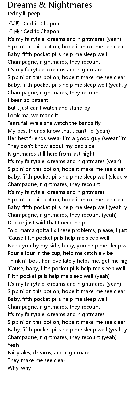 | [01:59.00] | Baby, fifth pocket pills help me sleep well yeah, yeah |