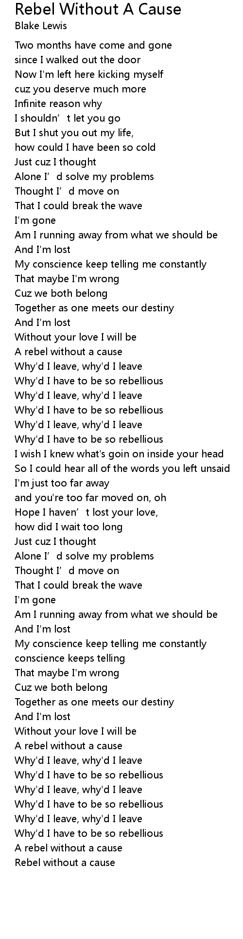 | [03:22.87] | Rebel without a cause |