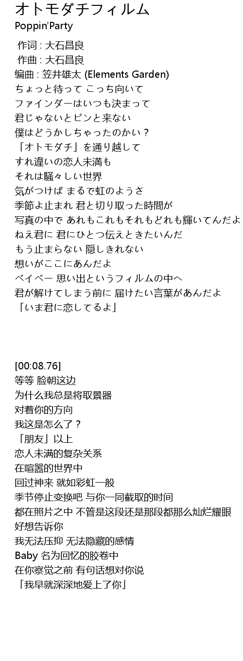 | [00:08.76] | 编曲 : 笠井雄太 (Elements Garden) |