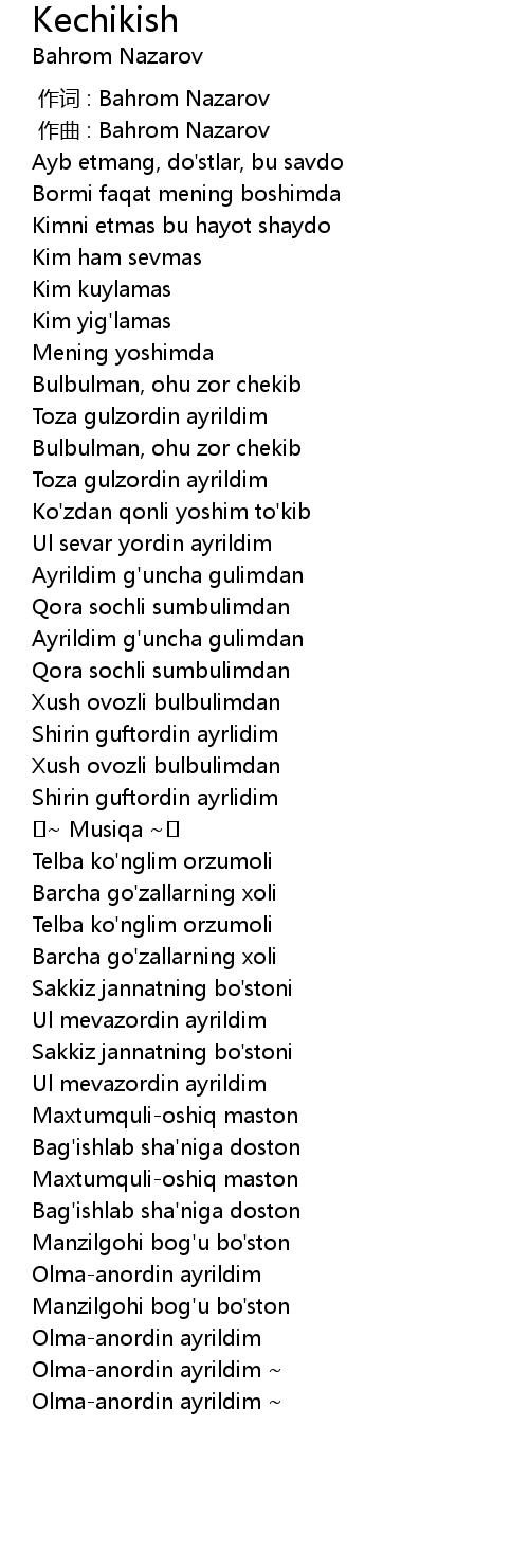 | [00:00.000] | 作词 : Bahrom Nazarov |