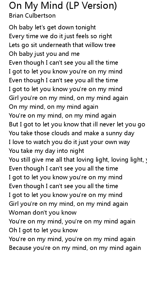 Because you're on my mind, on my mind again |
