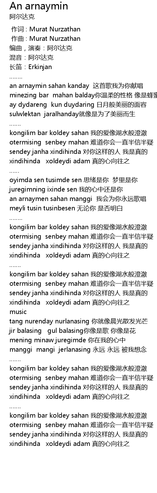 | [00:34:00] | an arnaymin sahan kanday 这首歌我为你献唱 |