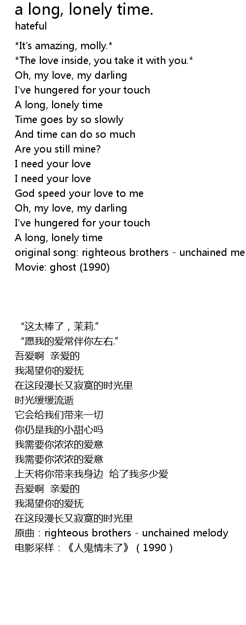 original song: righteous brothers - unchained melody |