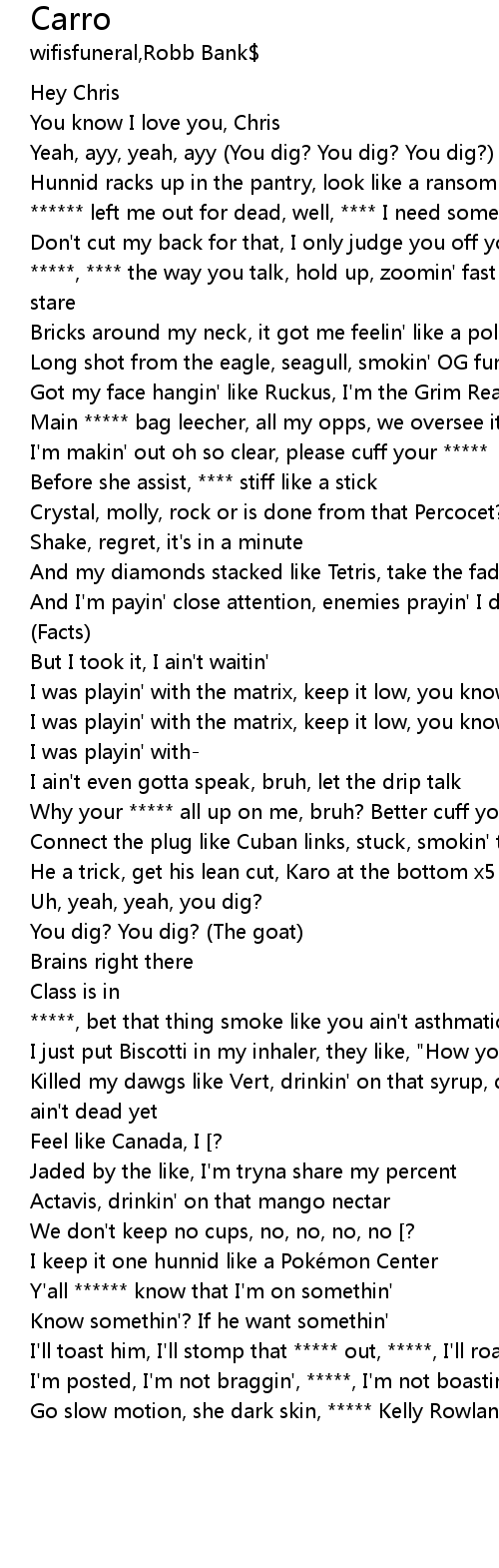 | [01:38.37] | *****, bet that thing smoke like you ain't asthmatic |