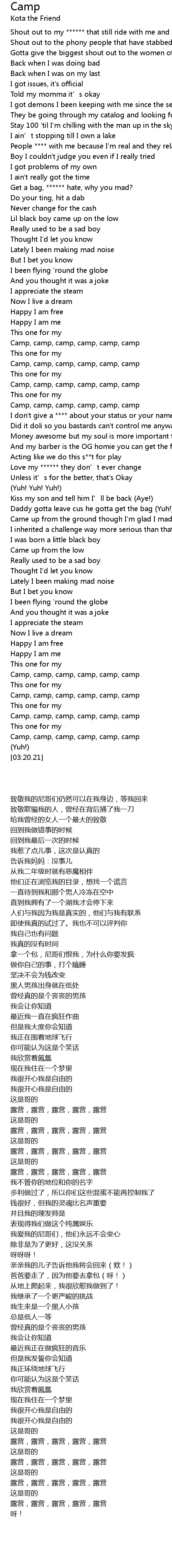 | [01:43.68] | Camp, camp, camp, camp, camp, camp |